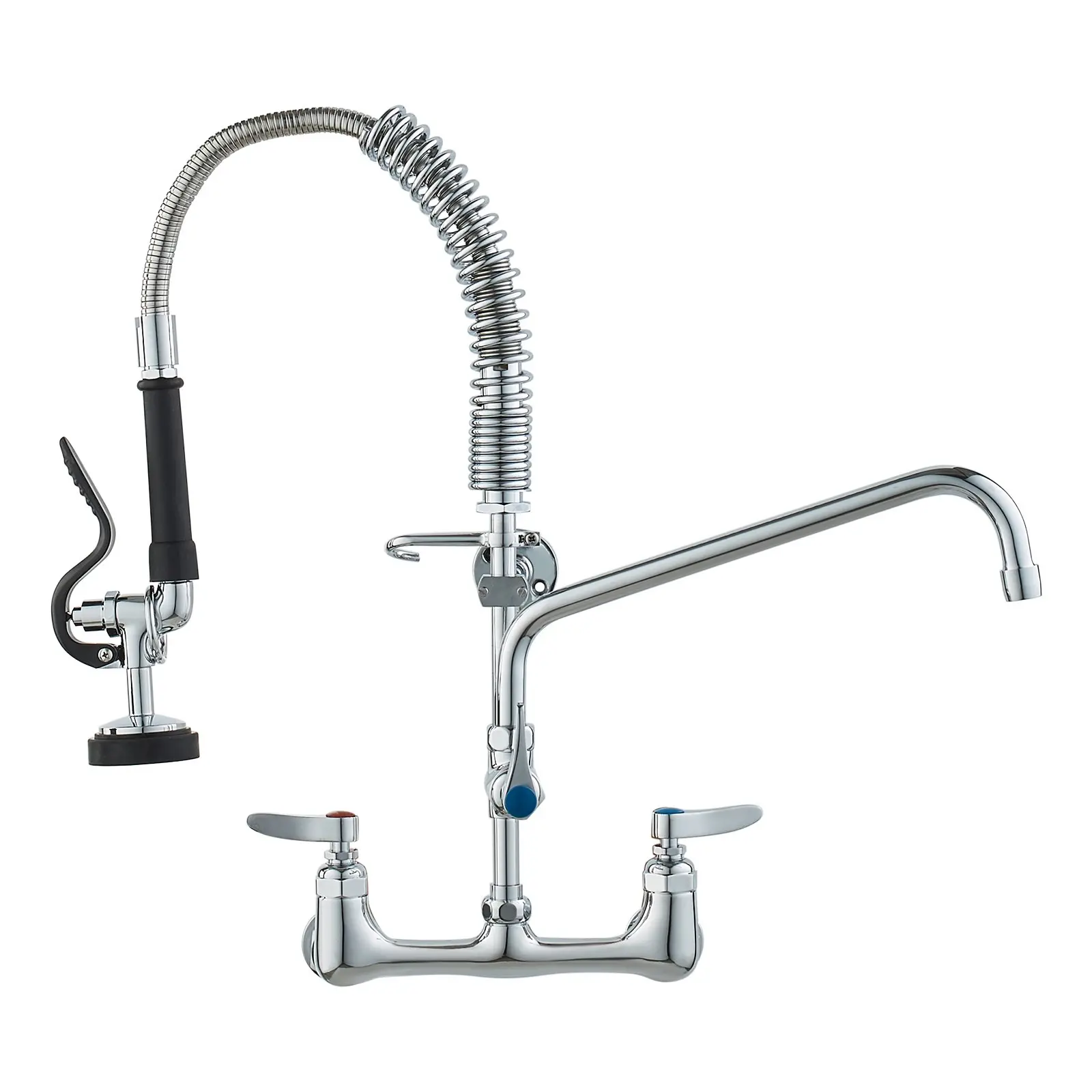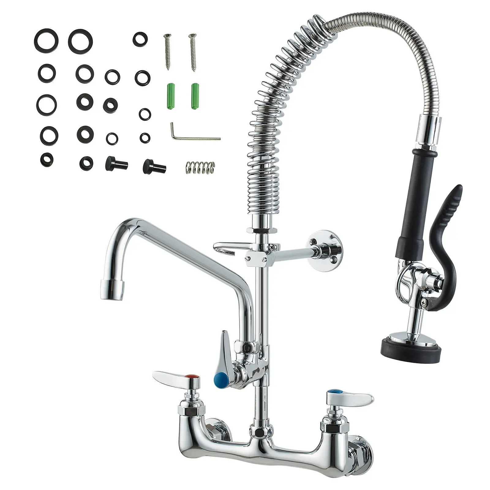 VEVOR Commercial Faucet with Pre-Rinse Sprayer, 21″ Height, 8″ Center, 12″ Swing Spout, Wall Mount Kitchen Sink Faucet, Brass Constructed Device with Pull Down Spray, for 1/2/3 Compartment Sink
